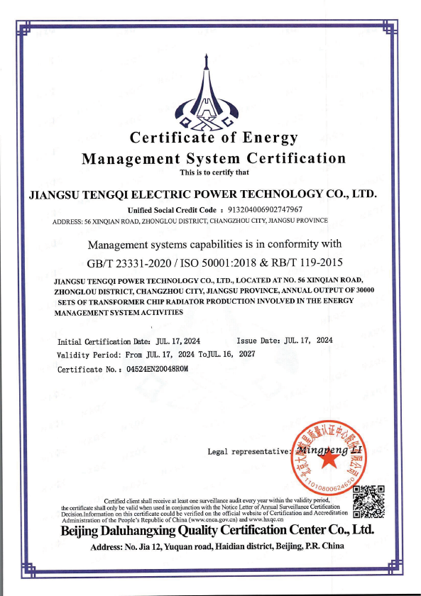 腾奇科技(股票代码:873868)自2004年在中国·常州成立以来,以超、特高压油浸式变压器用片式散热器的创新设计与卓越制造为核心,赢得了国内外客户的广泛信赖和支持。我们在全球布局,已建成包括江苏、浙江的先进制造工厂和台湾的生产服务基地,彰显了公司的国际化战略视野。